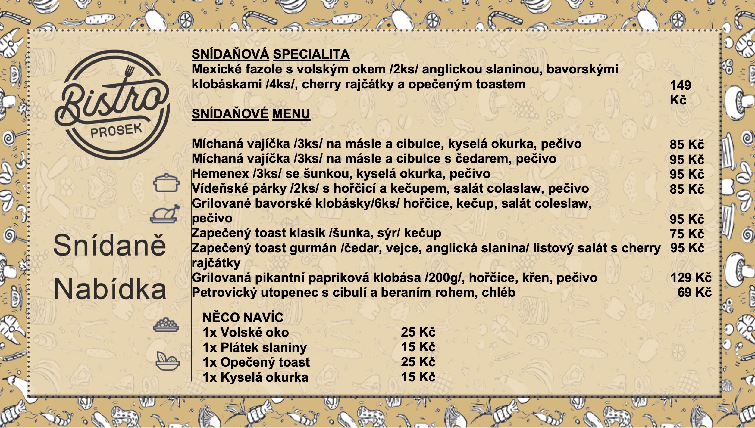 Aktuální informace a nabídka je k dispozici na https://bistroprosek.cz/